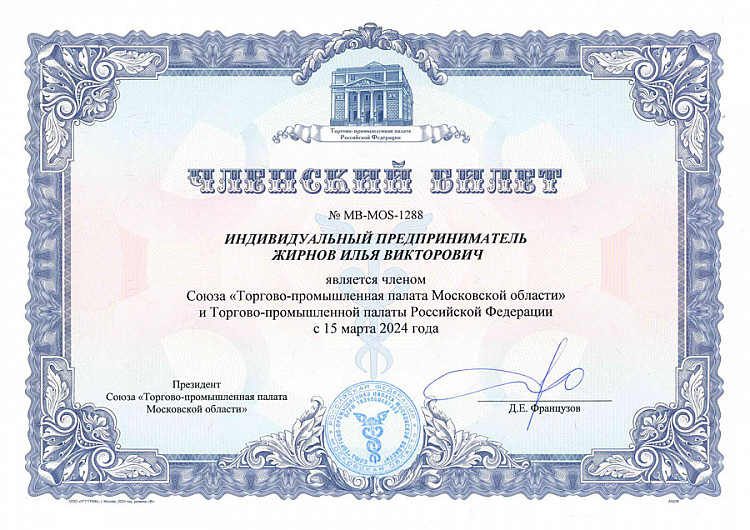 Thermolesprom Company is a member of the Union of the Chamber of Commerce and Industry of the Moscow Region and the Chamber of Commerce and Industry of the Russian Federation since March 15, 2024. CB No. MV-MOS-1288